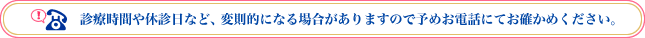 ※受付時間は、診療終了時間の30分前までとさせていただきます。